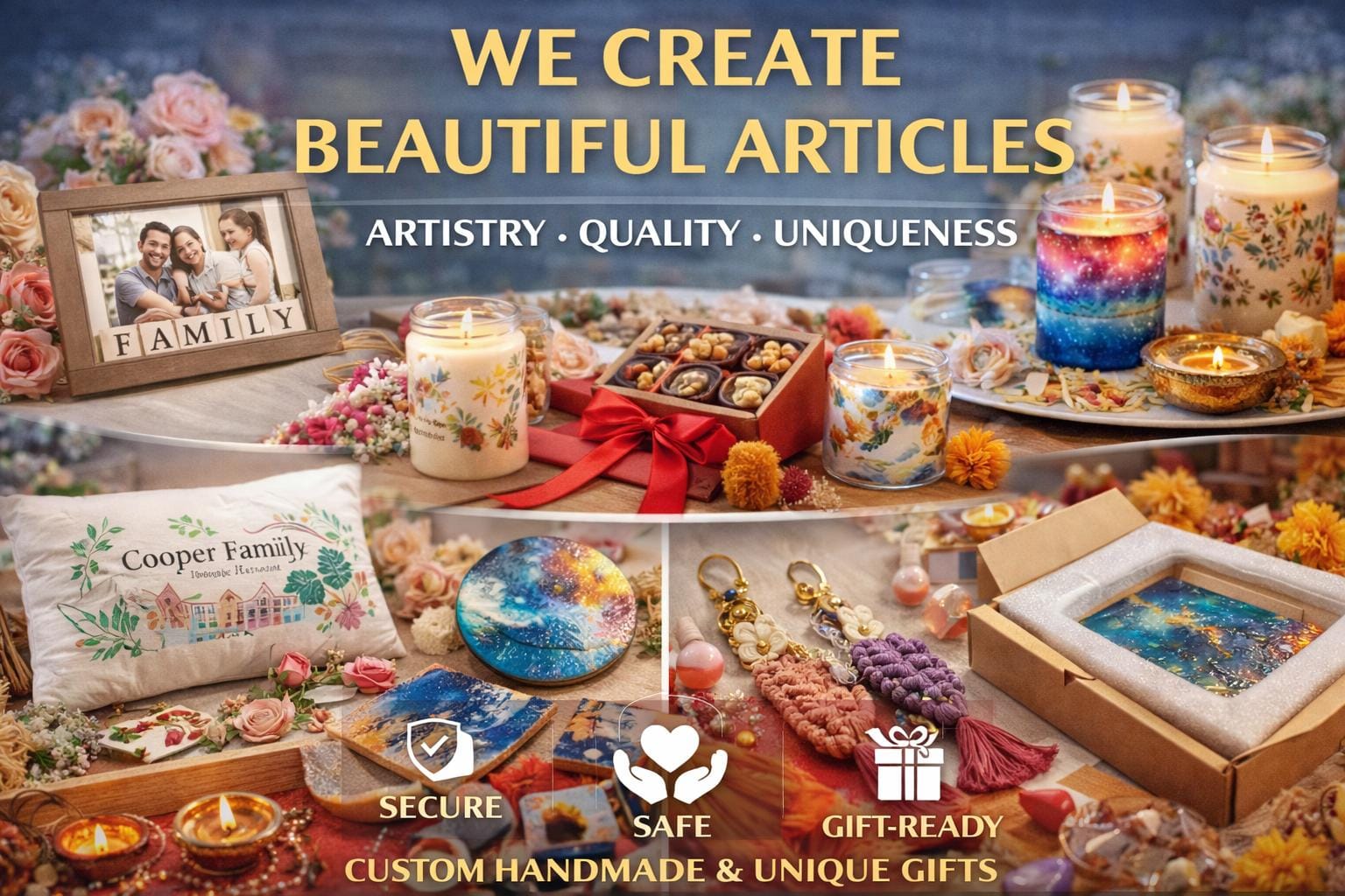 We believe that every creation should tell a story. Our journey began with a passion for handcrafted art and a commitment to creating meaningful, high-quality products that blend creativity with craftsmanship. Each piece is thoughtfully designed and carefully handmade using premium materials, ensuring uniqueness, durability, and timeless appeal.