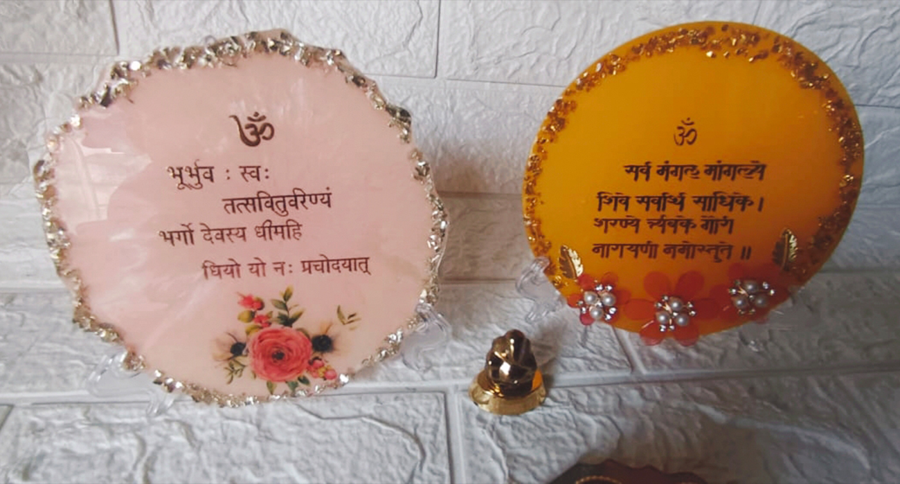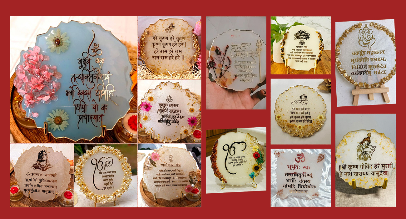Invite divine energy and inner peace into your space with our handcrafted Resin Mantra Frames. Each frame lovingly preserves sacred mantras in pure, crystal-clear resin, radiating calm, positivity, and spiritual harmony. Designed to inspire daily devotion and mindfulness, these frames create a sacred atmosphere for homes, offices, and meditation spaces, while also serving as a meaningful and blessed gift.
