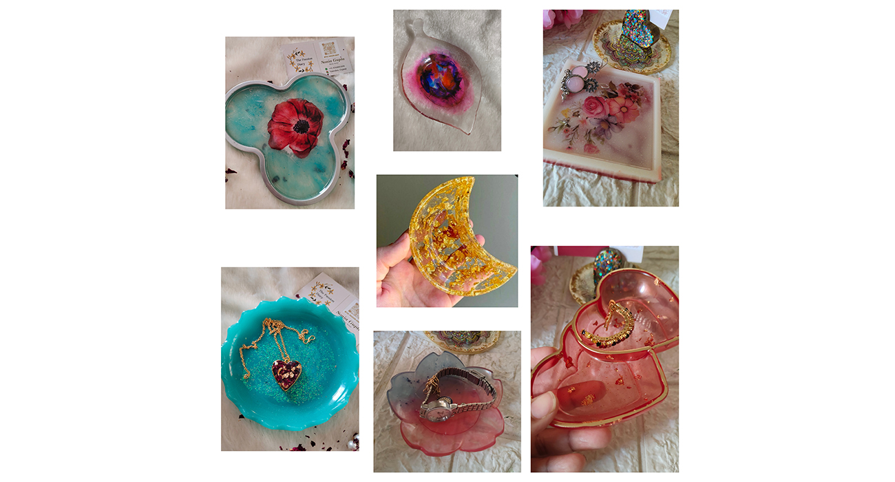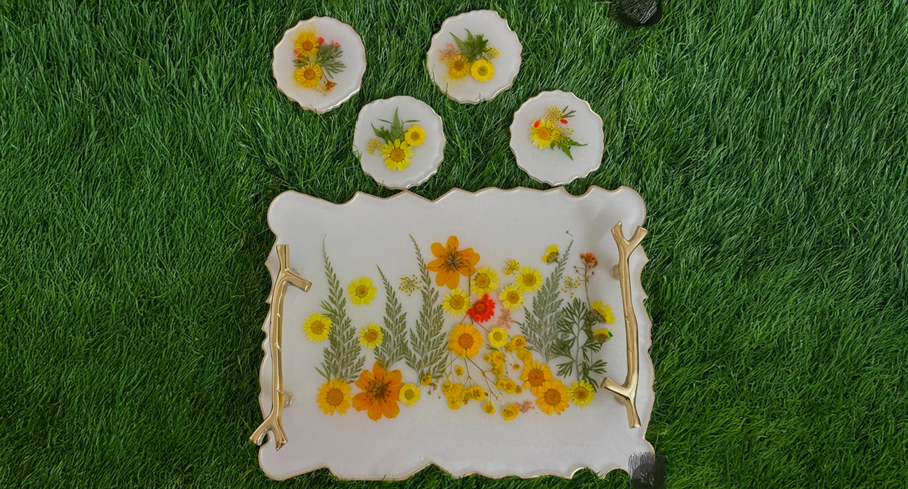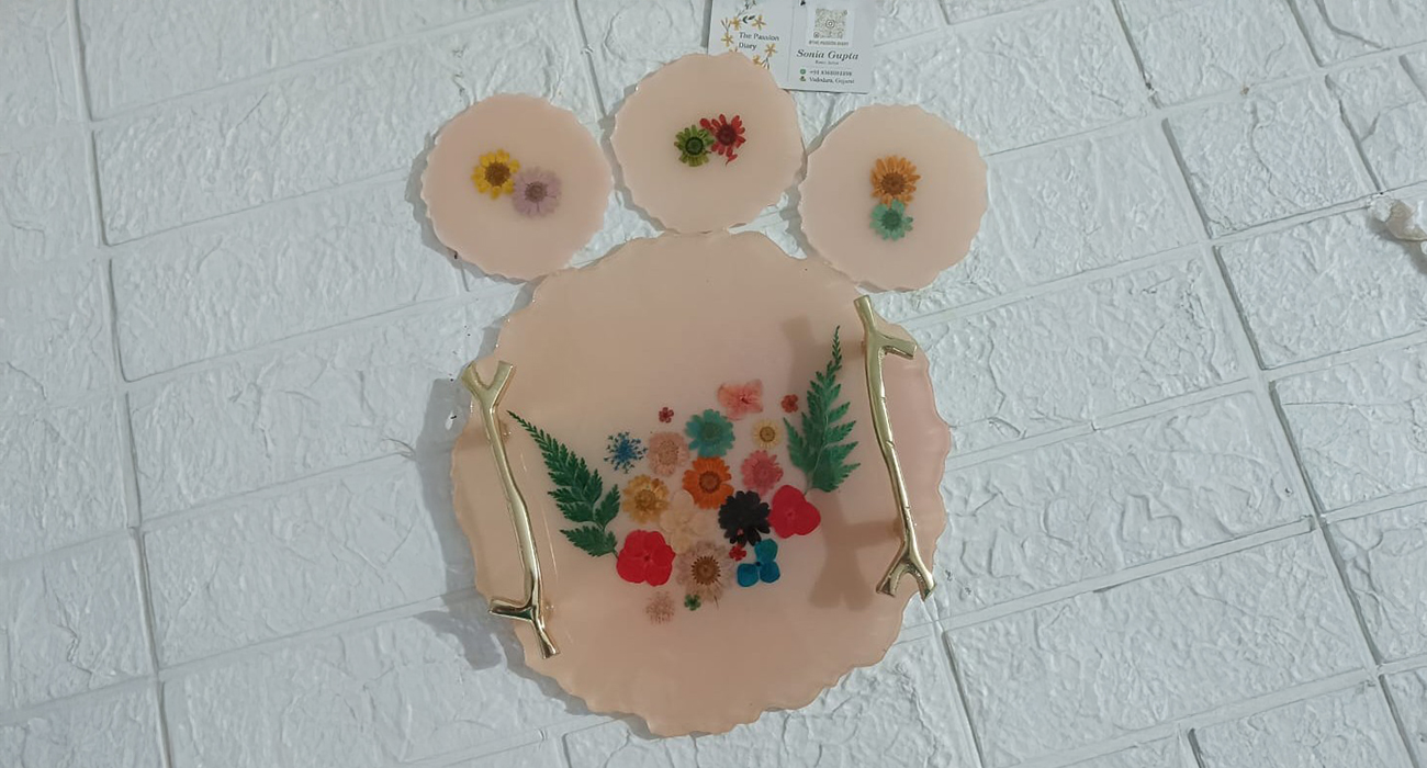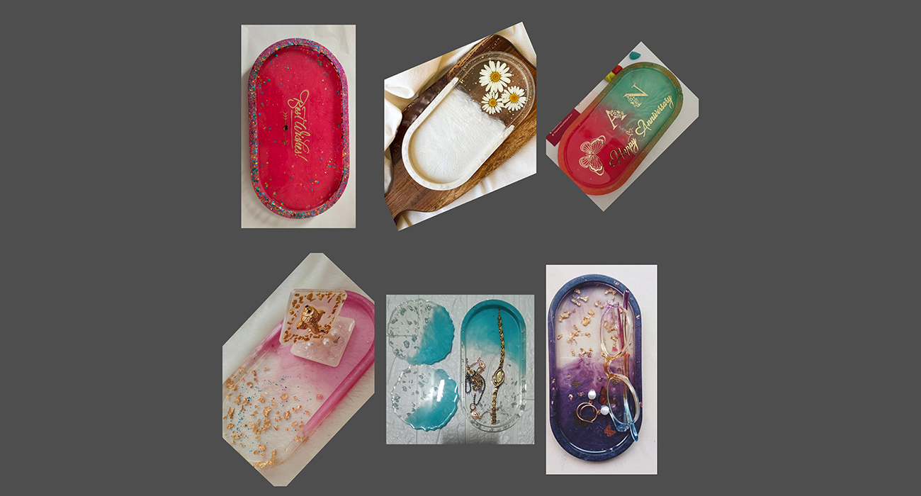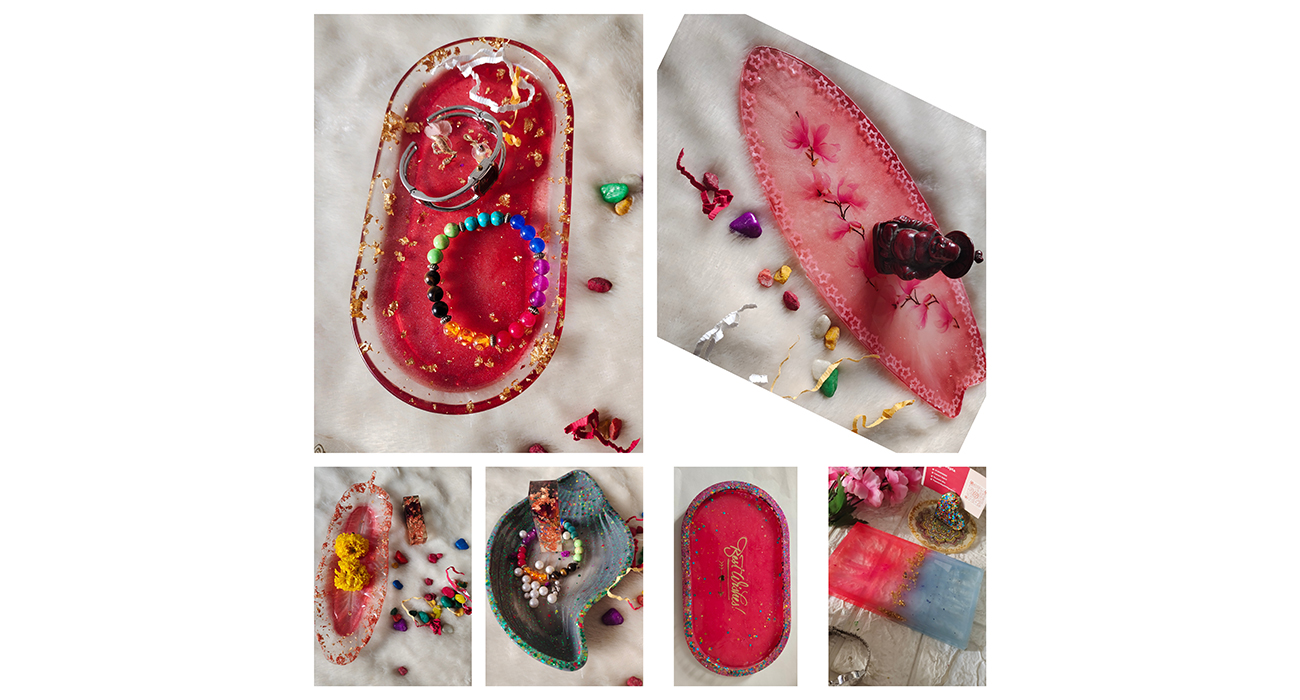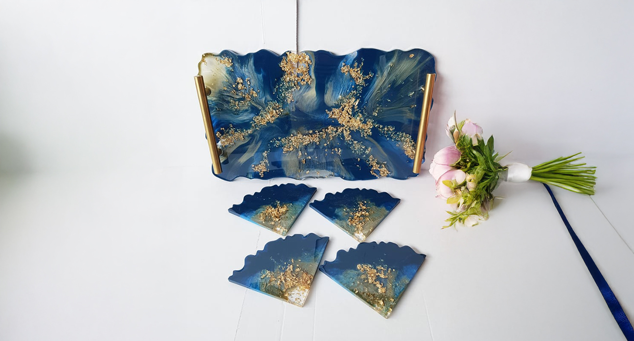 Our handcrafted resin trays combine artistic beauty with everyday functionality. Made with premium-quality resin and a smooth glossy finish, each tray is unique and designed to elevate your home décor. Perfect for serving, organizing,pooja or luxury gifting, these trays add a touch of elegance to any space.